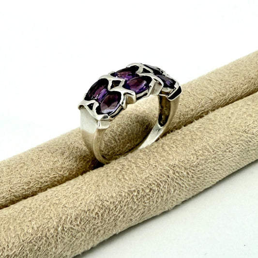Vintage 925 Sterling Silver Amethyst Ring – UK Size O – 6 Stone Setting