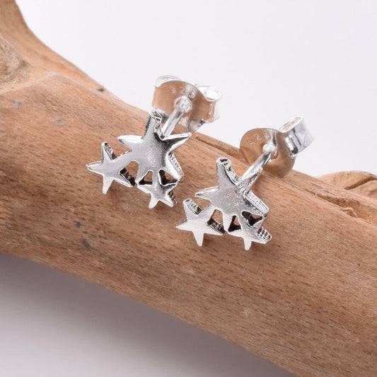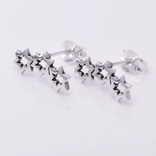 Brand New 925 Sterling Silver Triple Star Stud Earrings