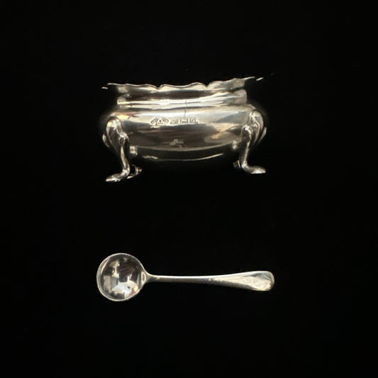 Vintage Silver Salt & Spoon - Birmingham 1963 Adie Brothers Ltd