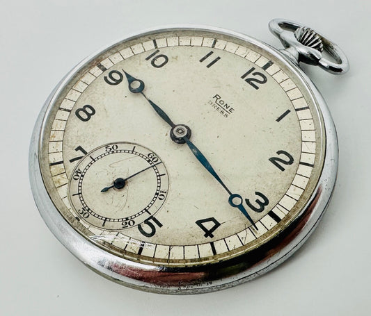 Antique Rone 15 Jewel Swiss Pocket Watch – Dennison Case – Working