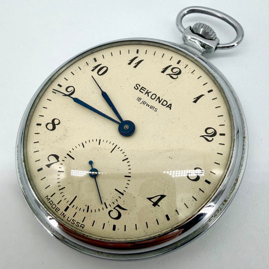 Vintage Sekonda 18 Jewel Pocket Watch – USSR – Working – 45mm