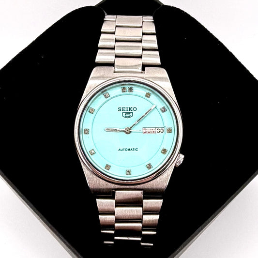 Vintage Seiko 5 Automatic Watch 6309-9060 Turquoise Dial Gem Markers - Working