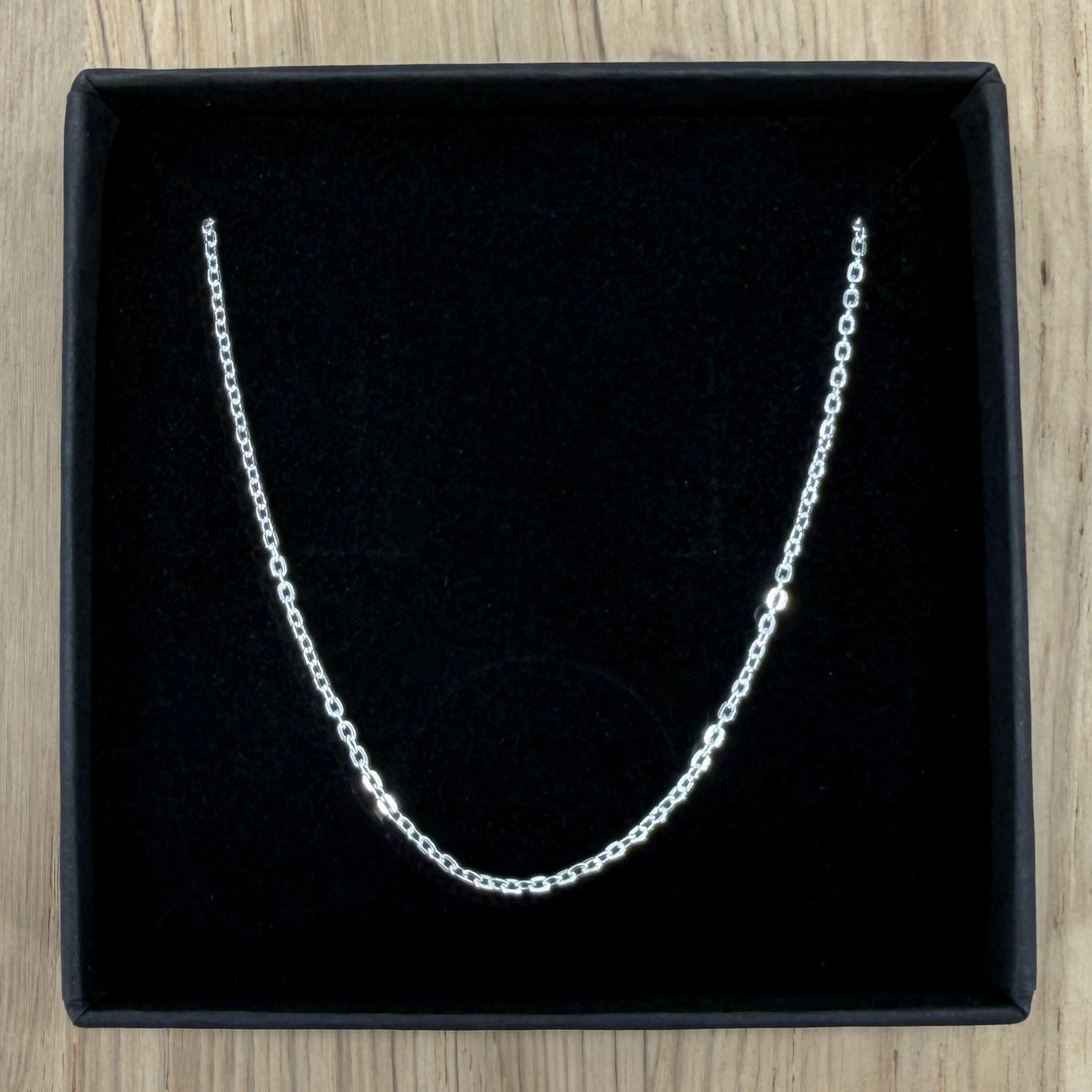 A classic and versatile brand new 925 sterling silver trace chain, featuring fine, evenly spaced links with a bright polished finish. Ideal for wearing alone as a minimalist necklace or pairing with a pendant. Supplied in a Bowles Ltd. gift box, making it perfect for gifting.