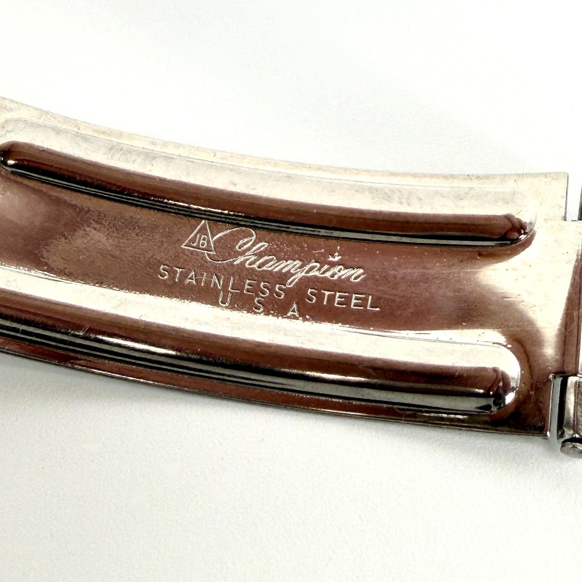 - Bracelet: Original Champion stainless steel bracelet (marked JB / Champion / USA)